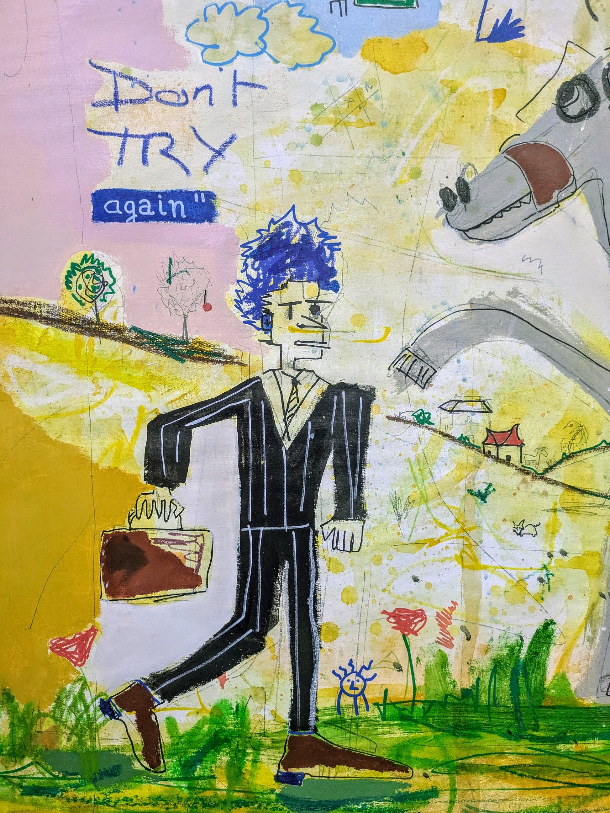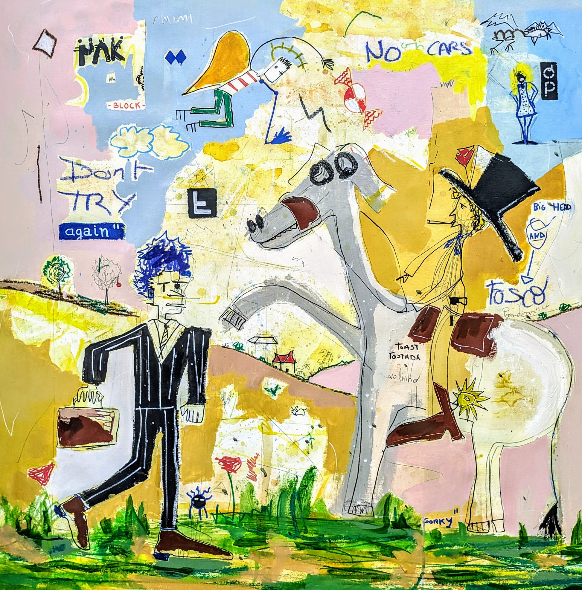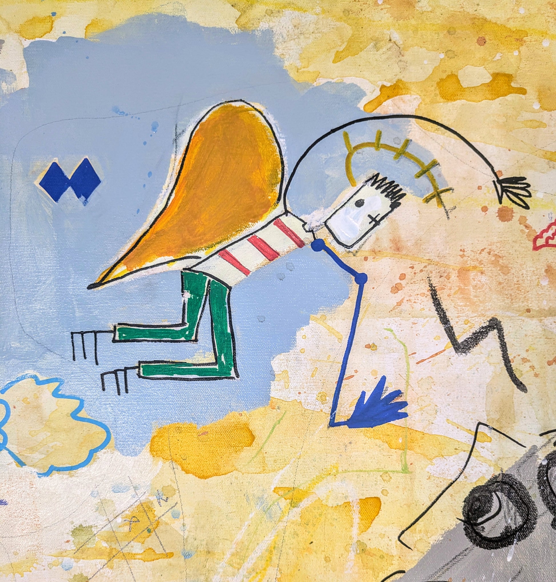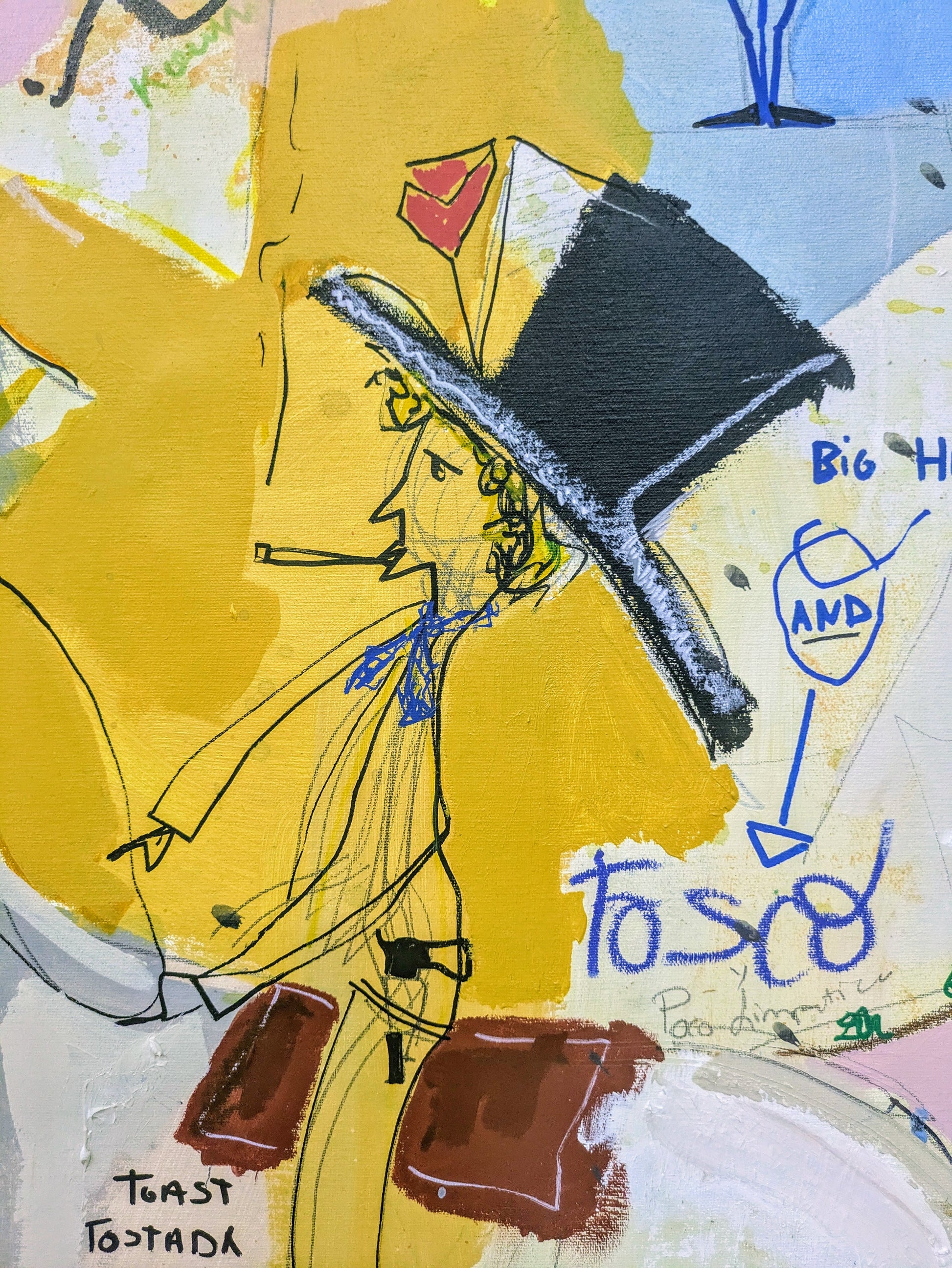 Técnica: acrílico, pigmentos, oil stick, lápiz, carboncillo y papel.