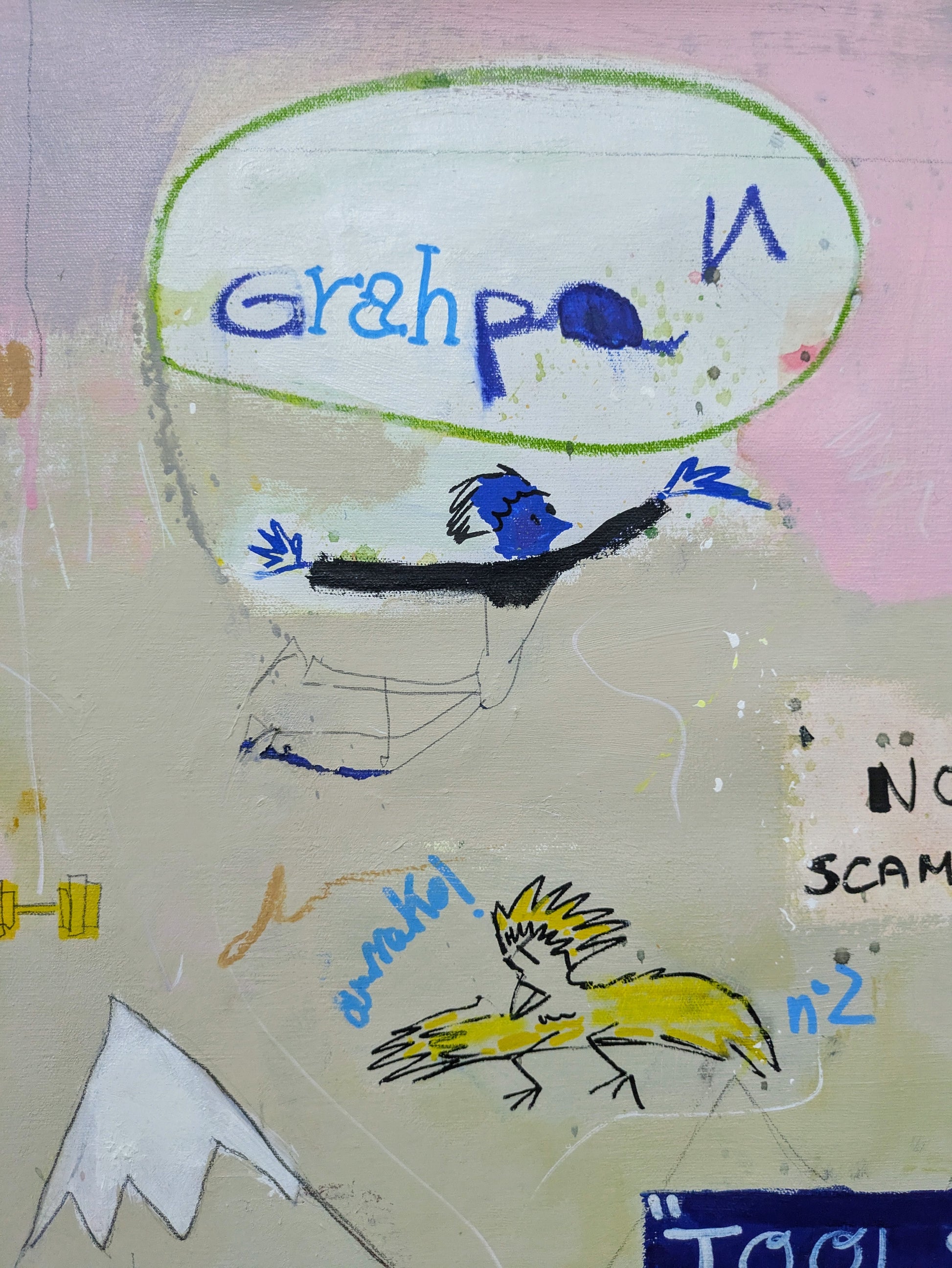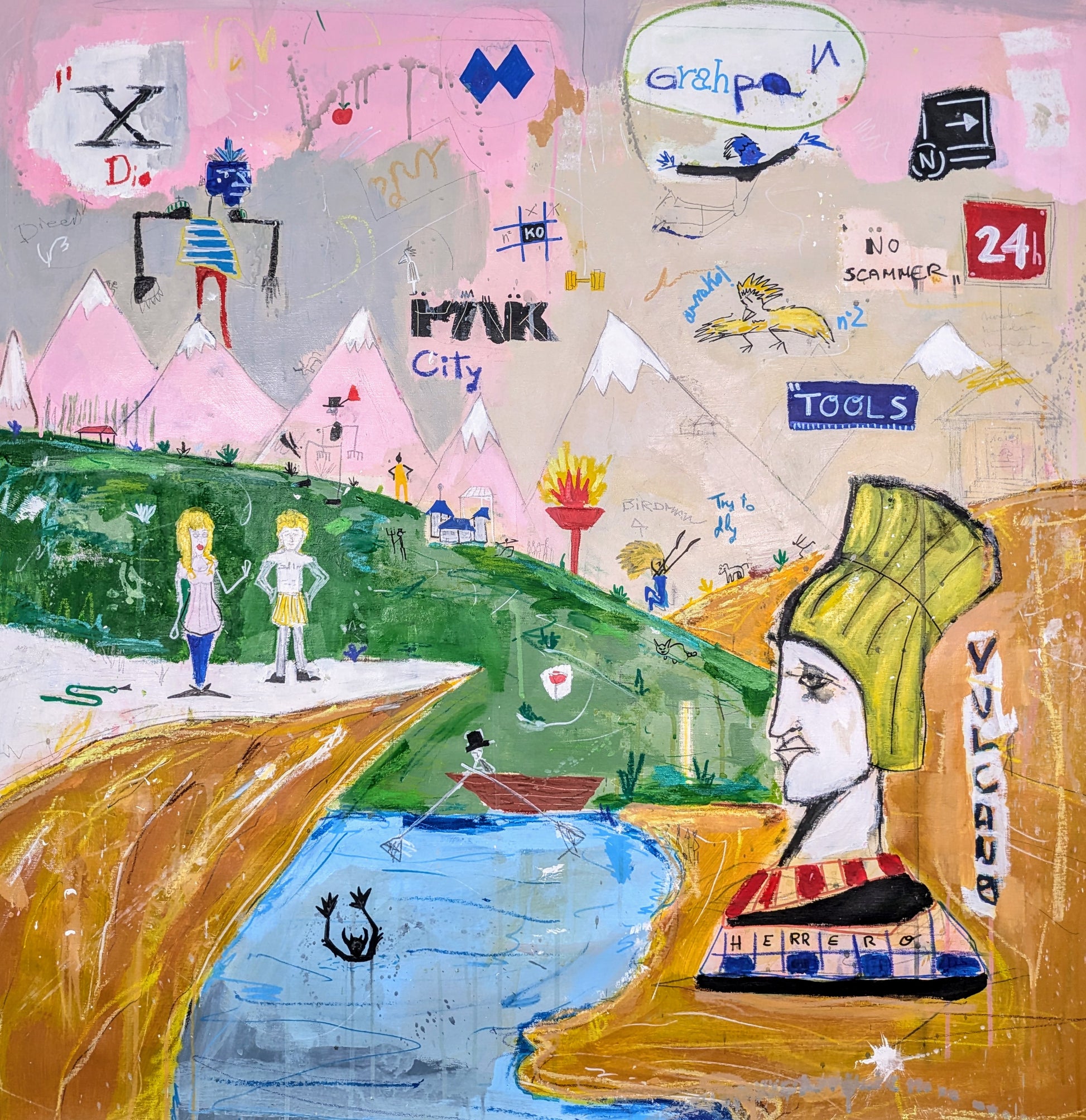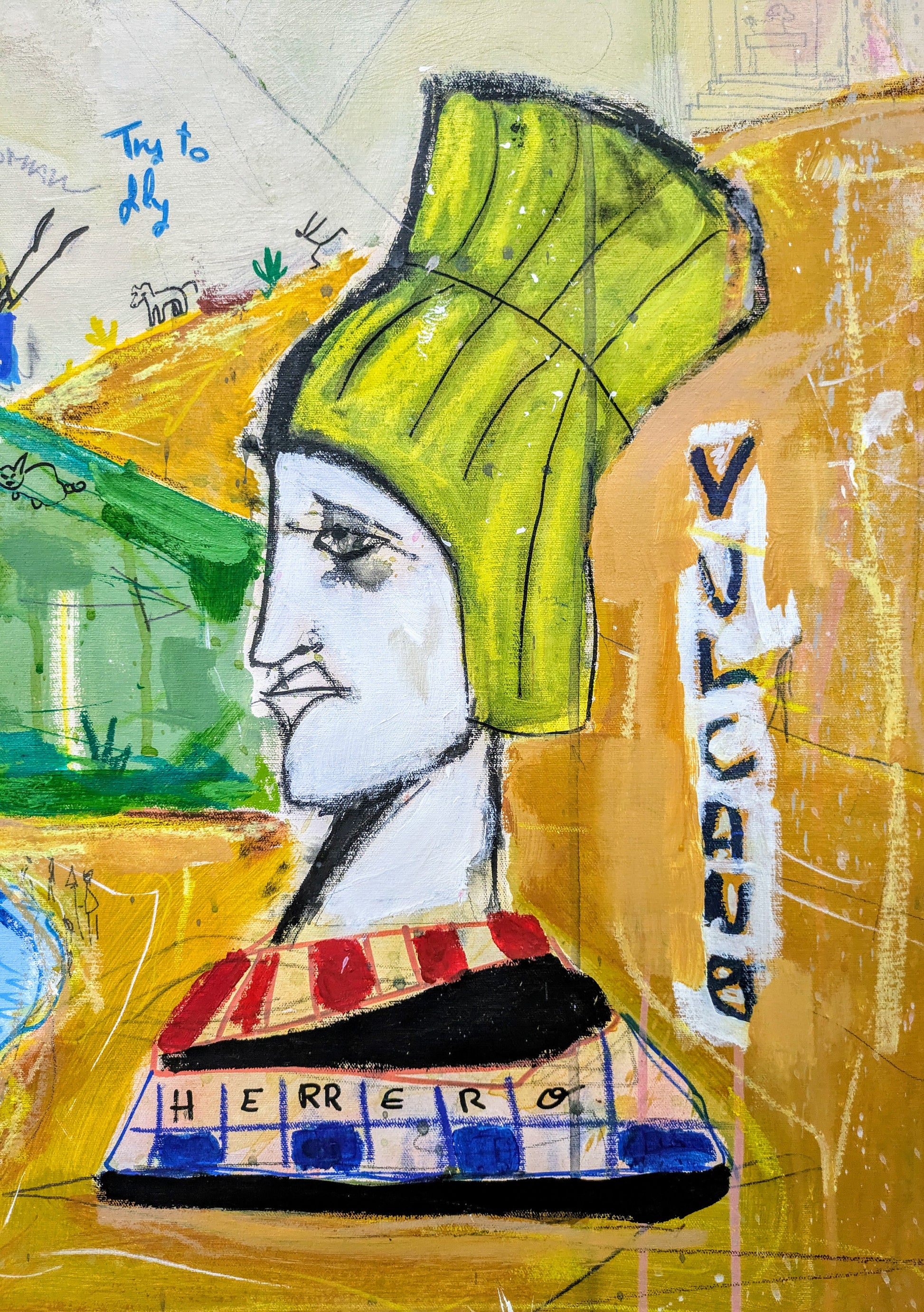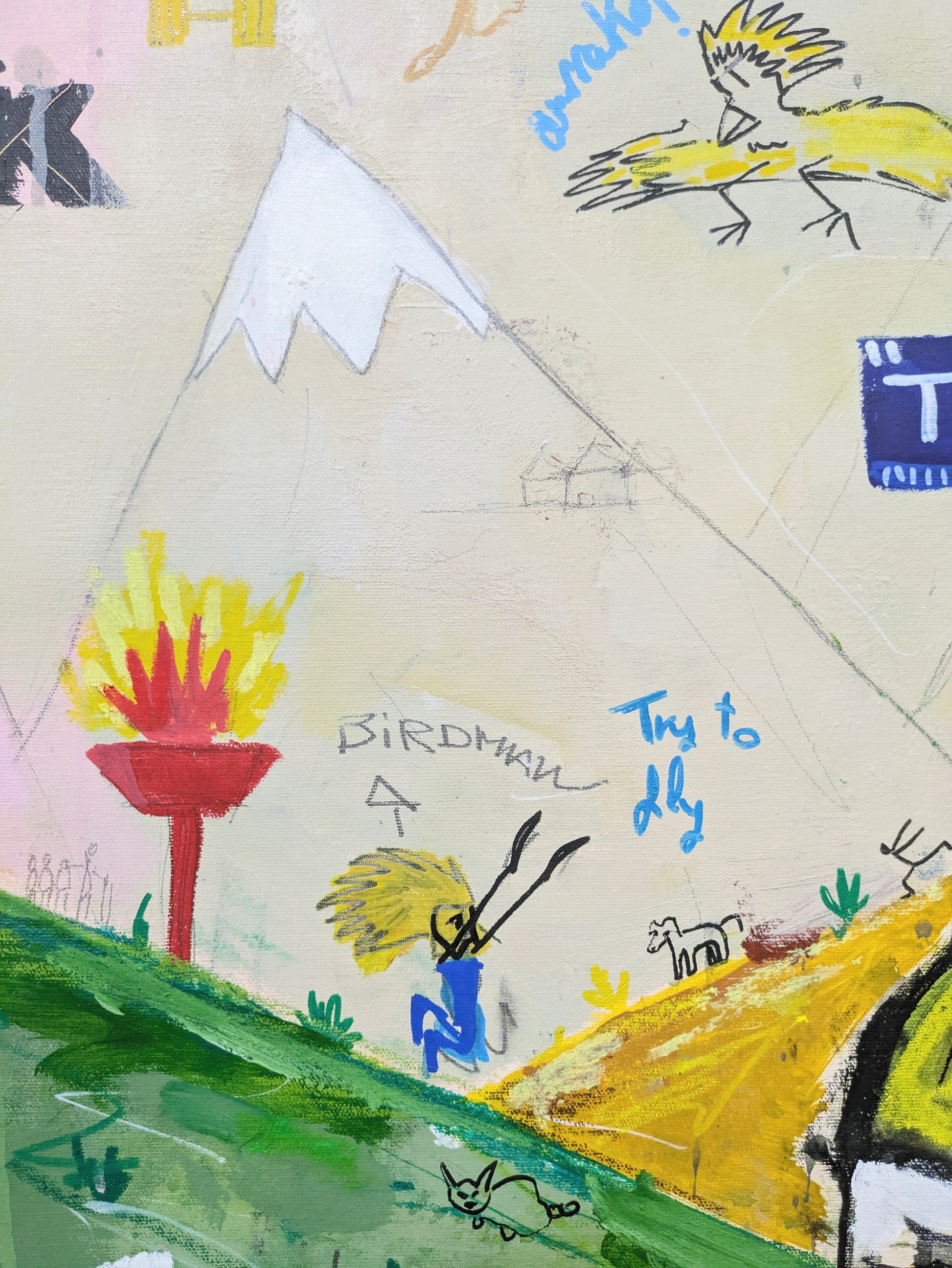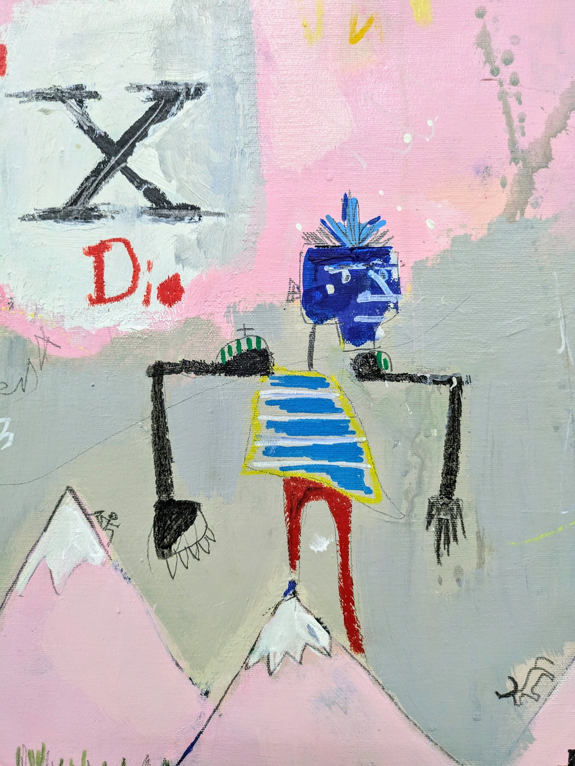 Técnica: acrílico, pigmentos, oil stick, lápiz, carboncillo y papel.