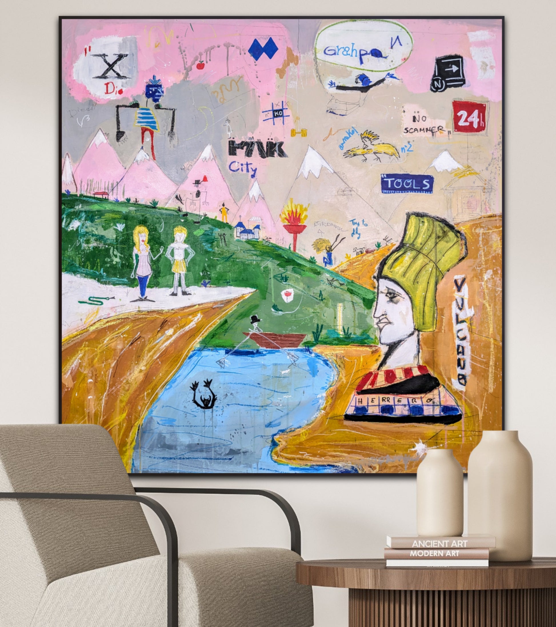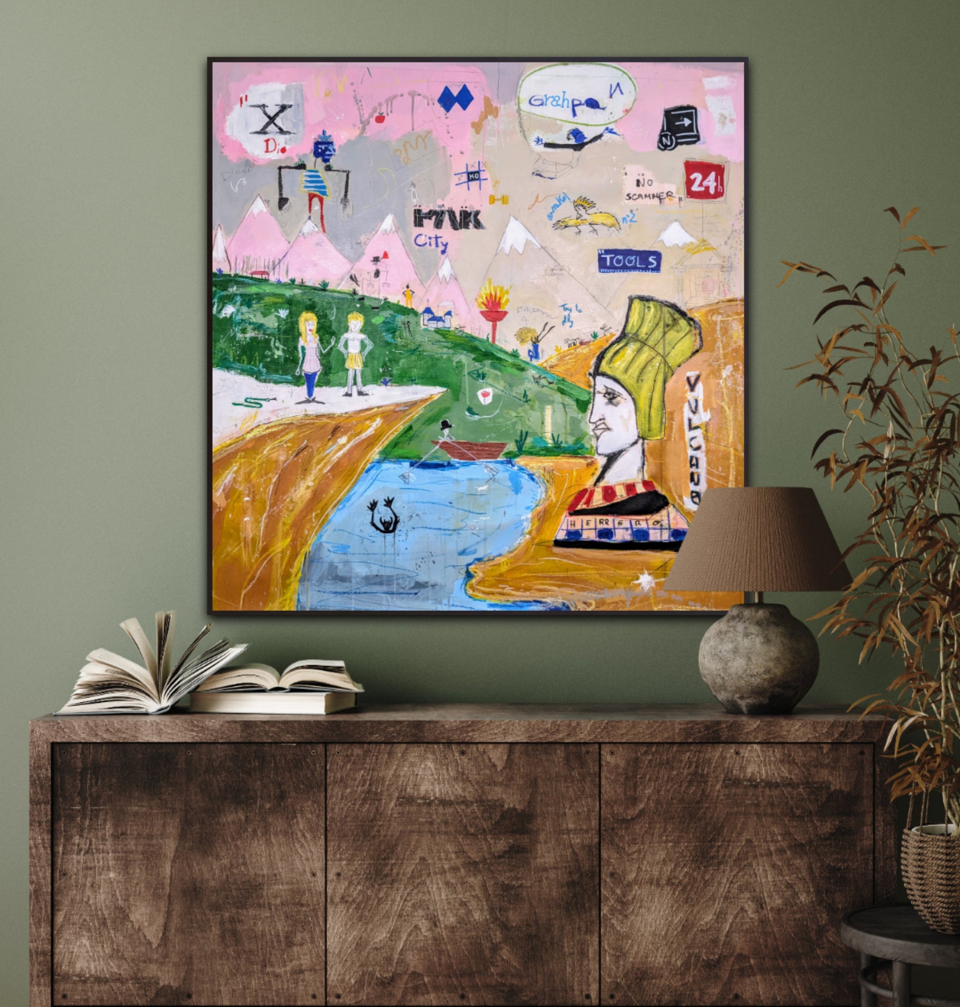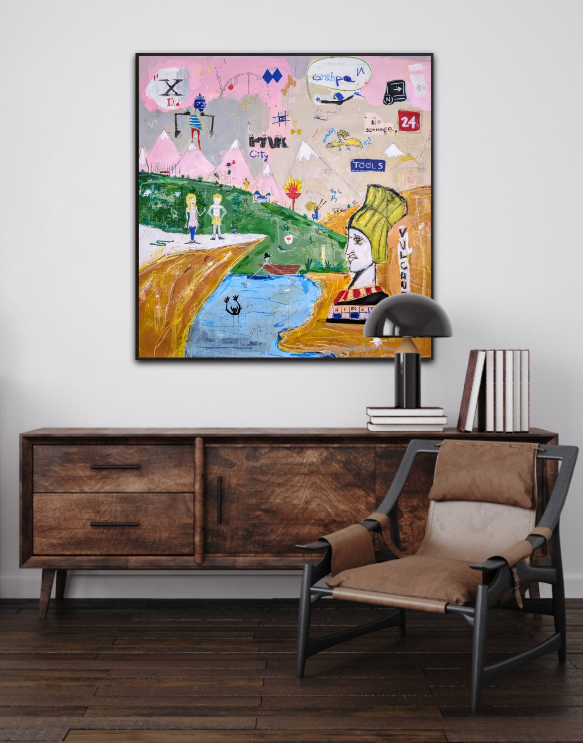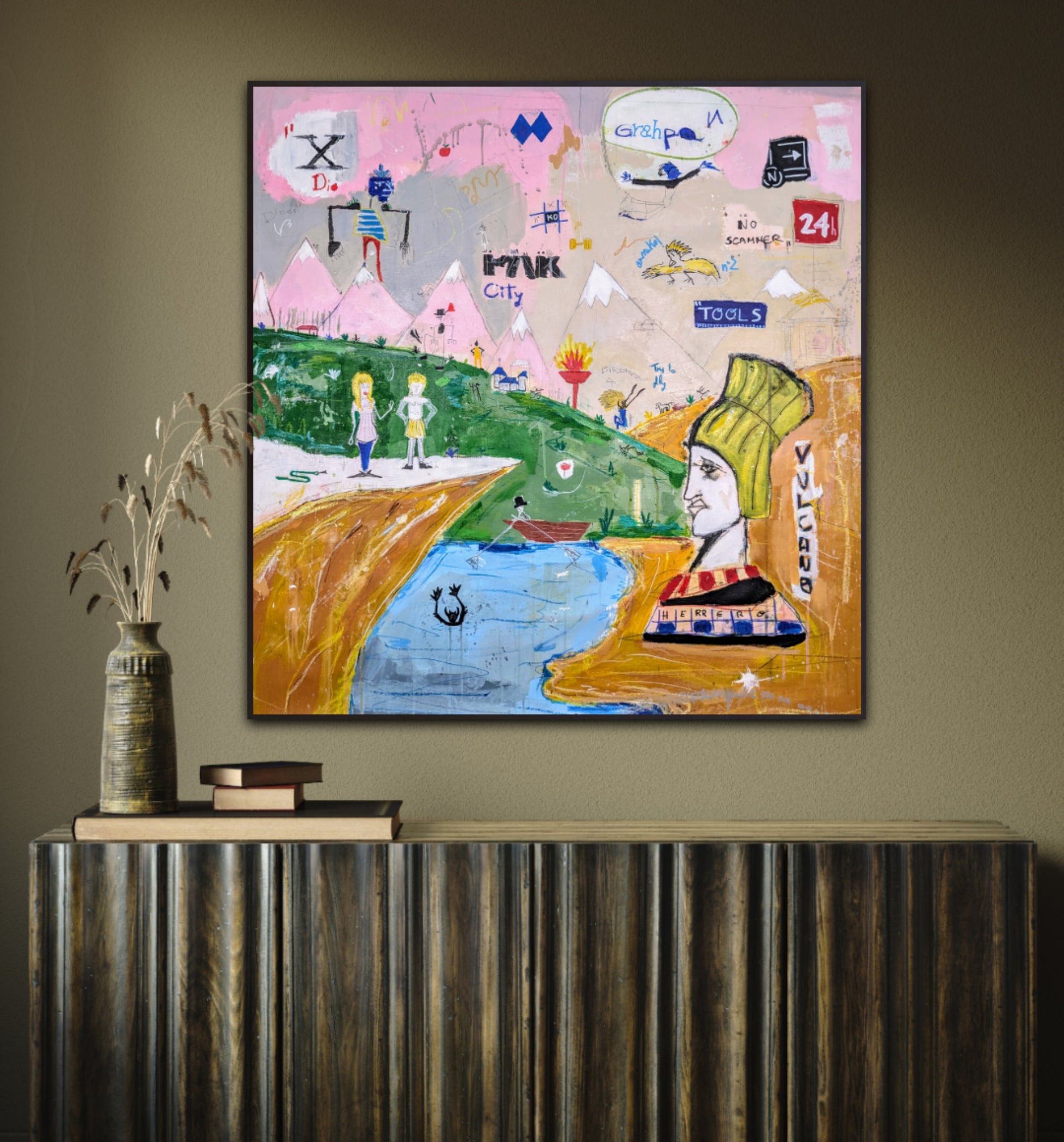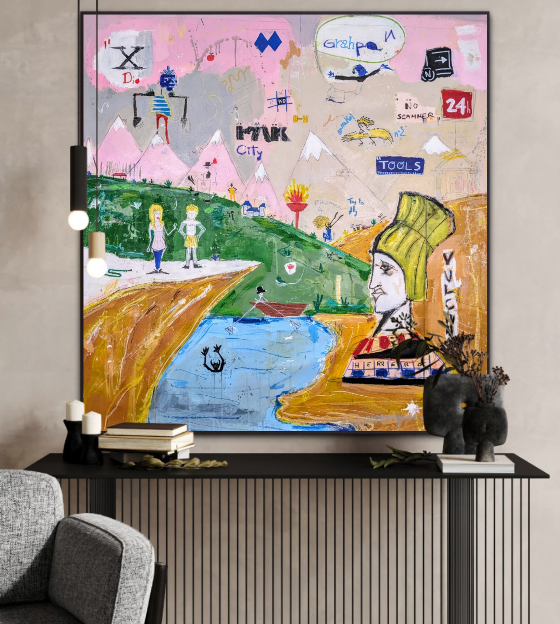 Técnica: acrílico, pigmentos, oil stick, lápiz, carboncillo y papel.