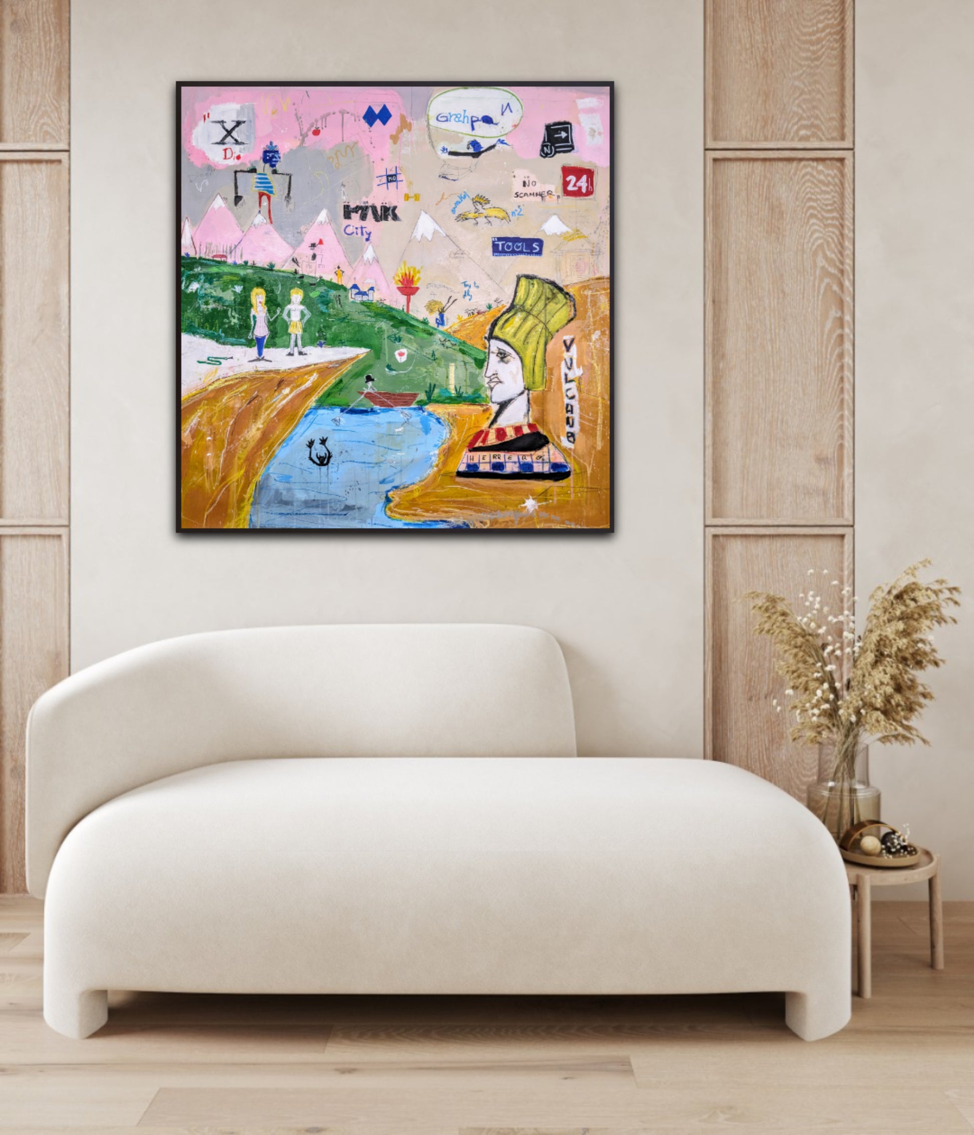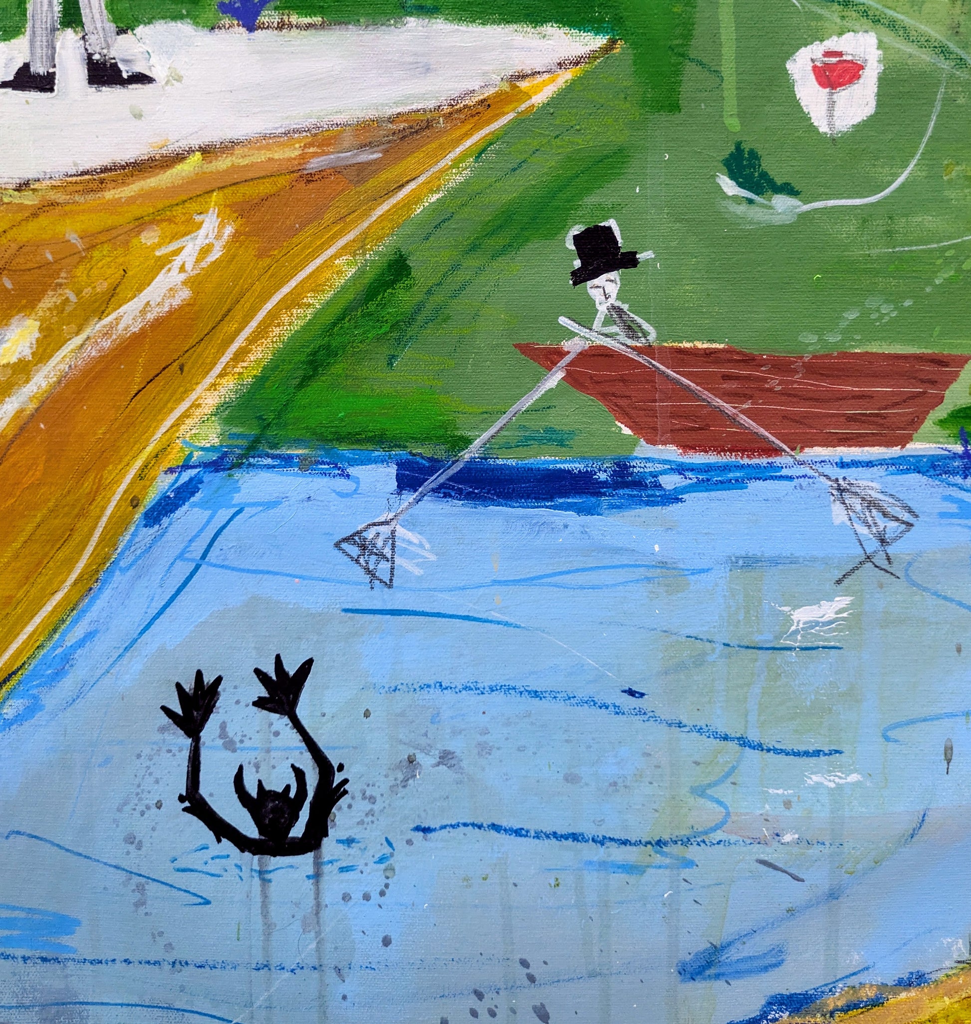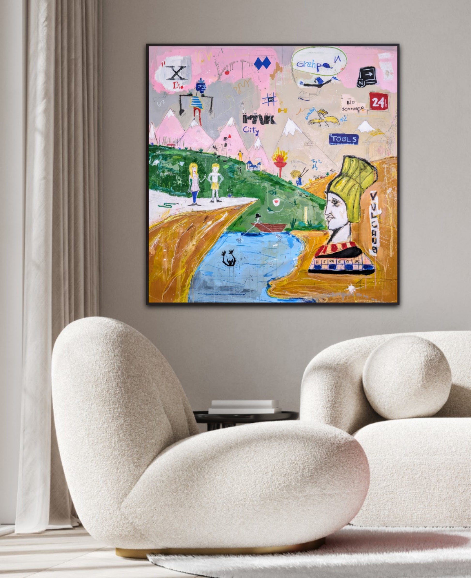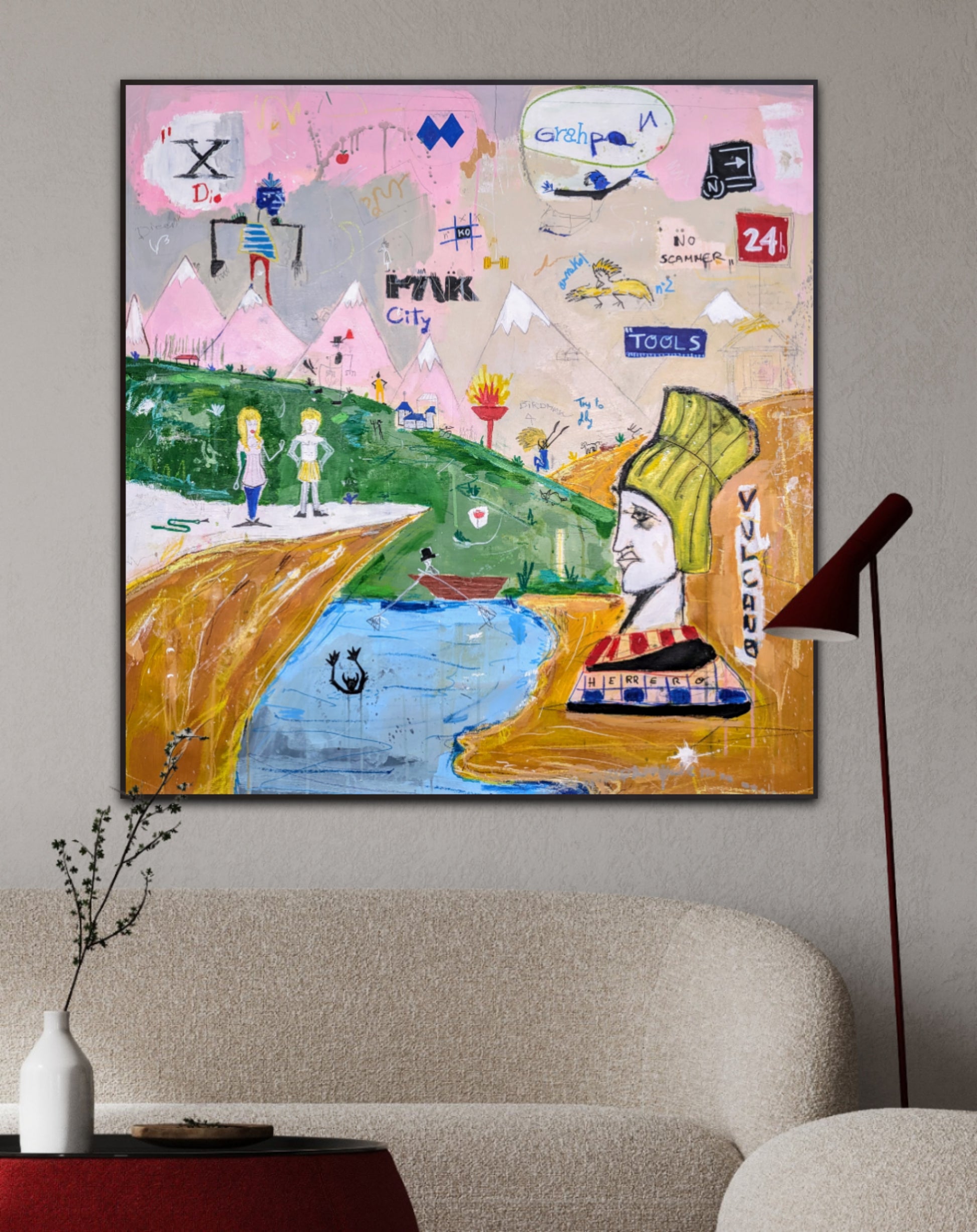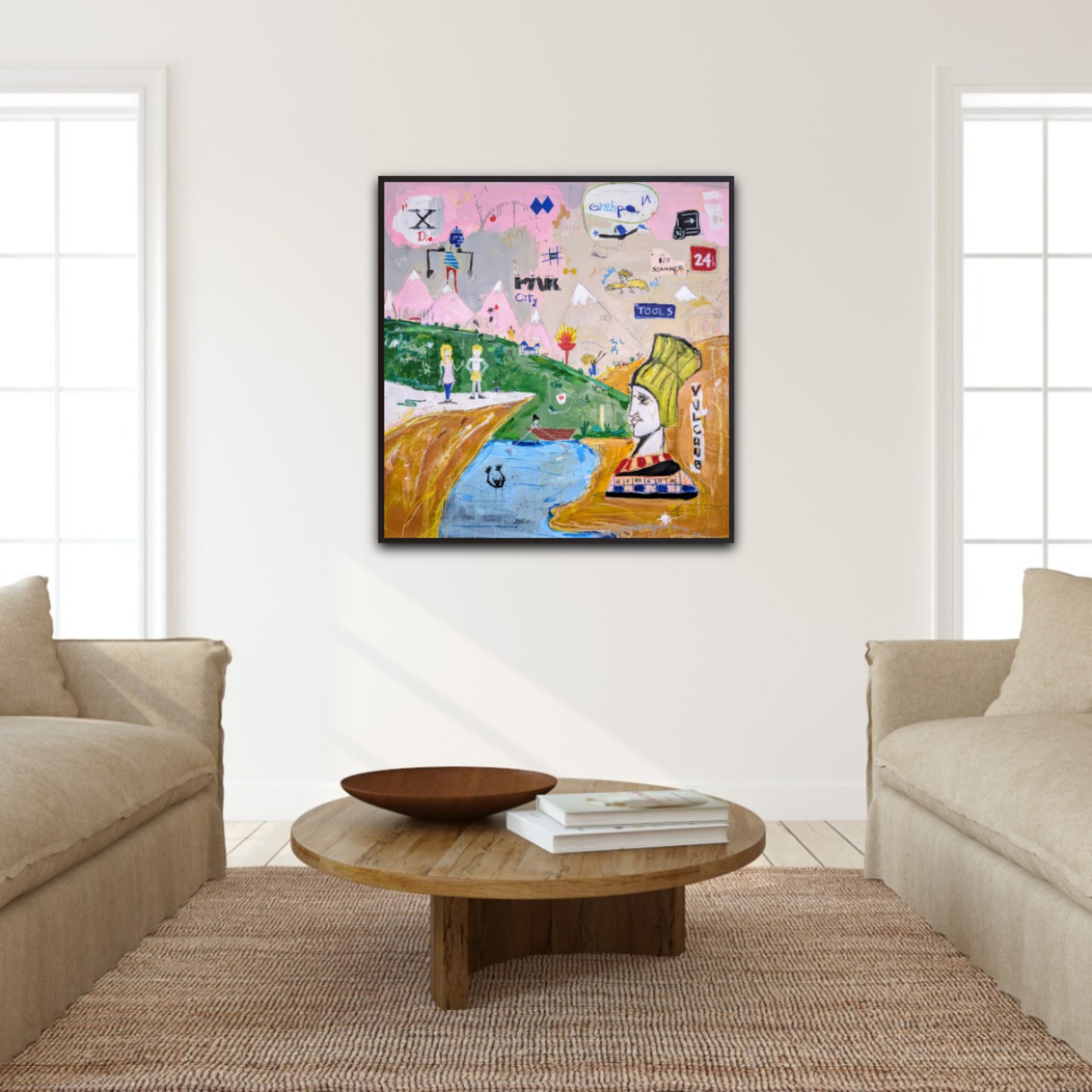 Técnica: acrílico, pigmentos, oil stick, lápiz, carboncillo y papel.